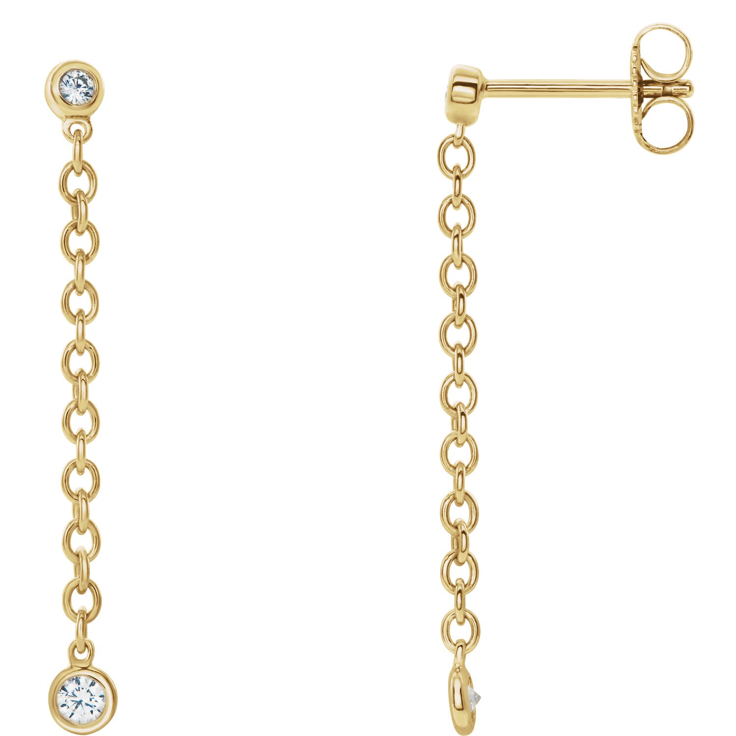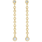 Achieve understated elegance with our Bezel Set Chain Earrings. Crafted with exquisite attention to detail, these earrings boast of a timeless beauty thanks to the bezel setting with a shimmering chain. Perfect for a luxurious and sophisticated look.
