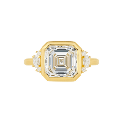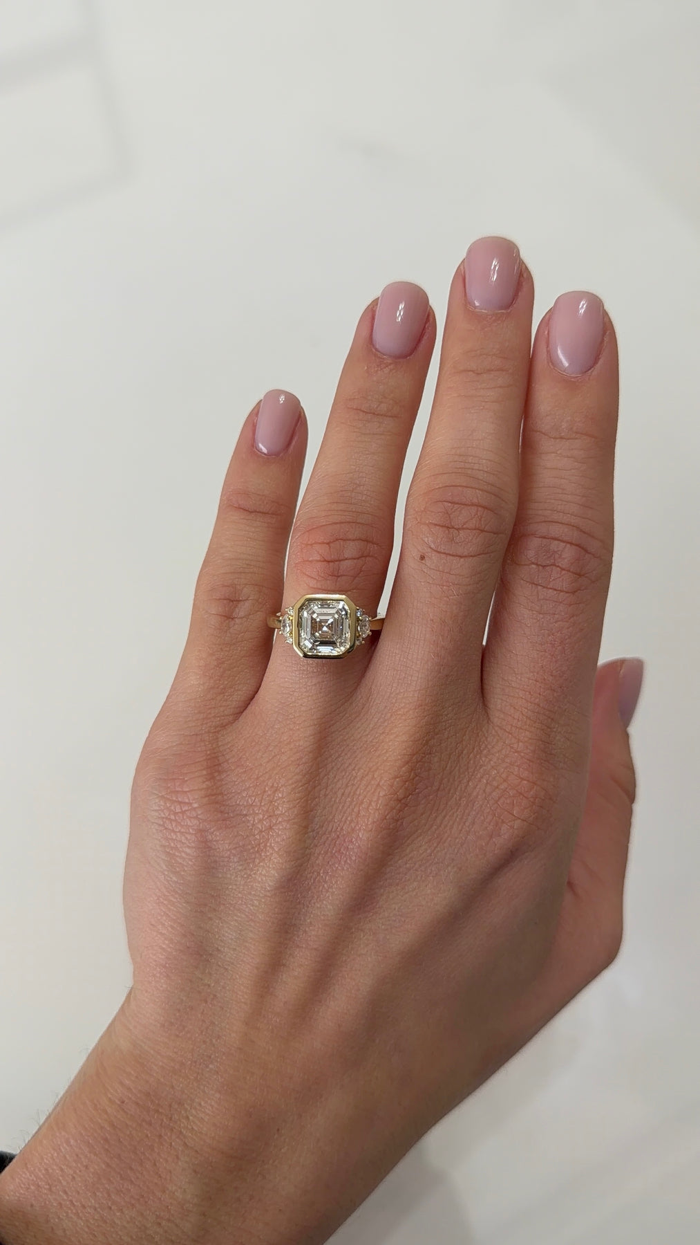 Beautifully bezeled and accented by mix-shape diamonds, this 3.01ct E VS2 lab-grown Asscher cut is the perfect mix of modern and timeless.