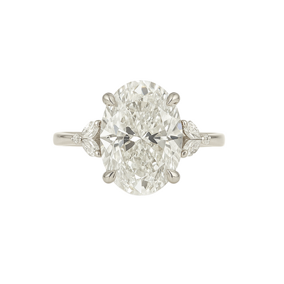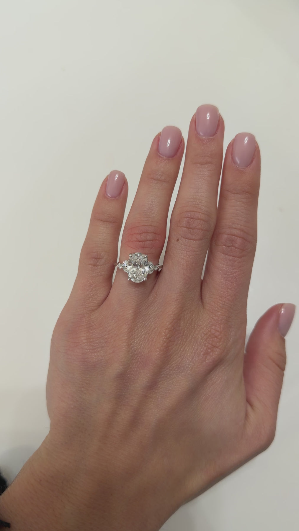 3.01ct E VS2 lab-grown oval cut accented in perfect harmony with lab-grown marquise and round brilliant diamonds.