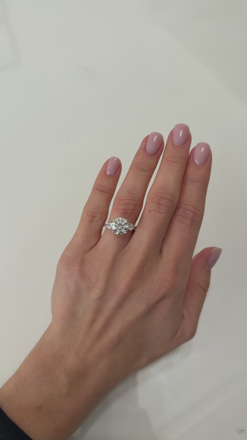 Center stone: 3.19ct F VS2 lab-grown round brilliant