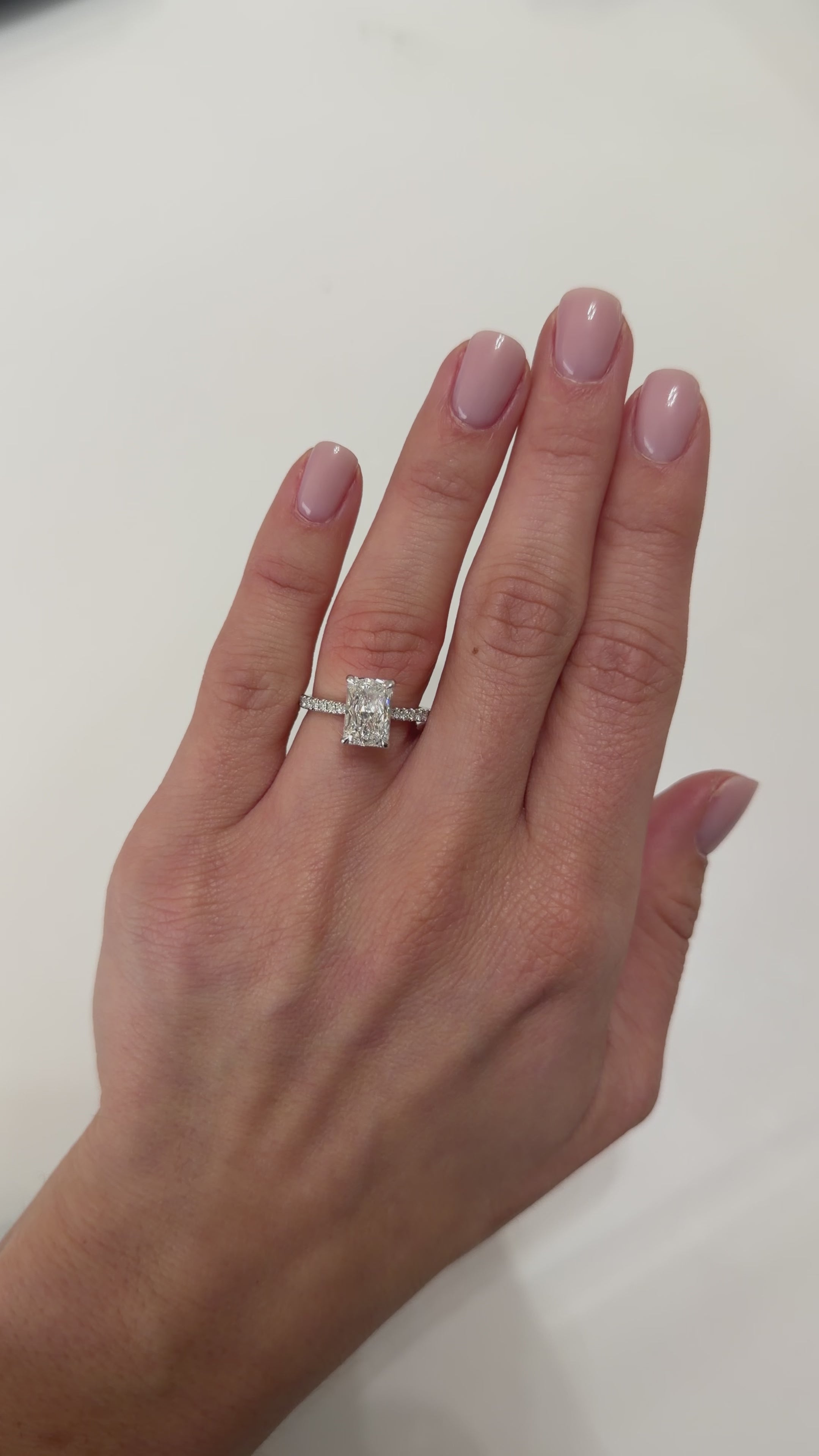 - Center Stone: 2.32ct F VVS2 Lab-grown Radiant Cut