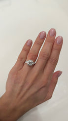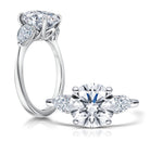 This stunning 3.19ct F VS2 LG Round Brilliant is set in 14kt white gold and accented by 2 lab-grown pear shape diamonds.