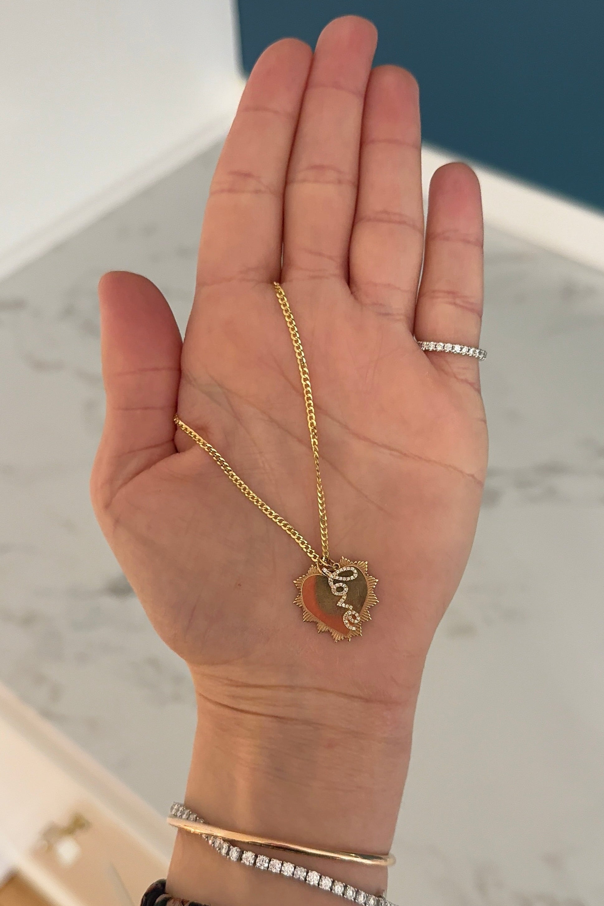 A romantic Engravable Spike Heart Pendant to add to a chunky chain. This 18.5 x 20 mm pendant is the perfect charm for layering your favorites. Make in 14K gold. *chain sold separately*