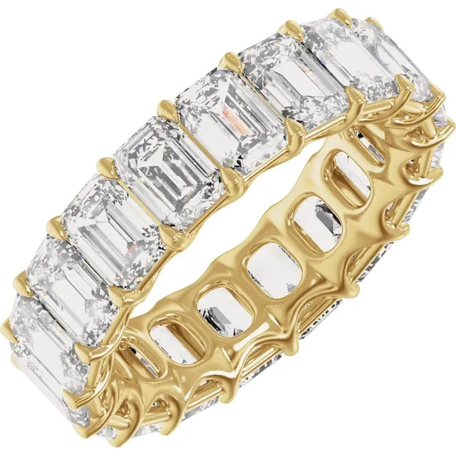 The ICONIC emerald cut eternity band, crafted to sit close to the hand, its low-profile setting offers both comfort and a sleek, tailored look—ideal for wearing alone, stacking or pairing seamlessly with an engagement ring.