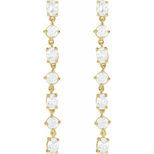 A subtle yet major moment with these lab grown oval and round diamond drop earrings. Featuring 1.20ctw of colorless and vs1/2 lab grown diamonds available in 14kt white, yellow, or rose gold.